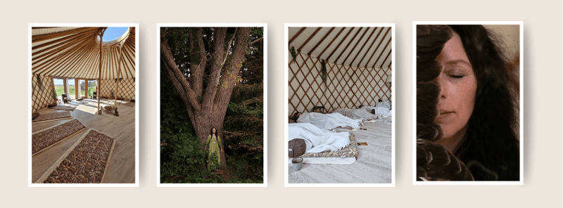 Et sted for indre arbejde og sjælens dybe kald. Jurten – Drømmetemplet – er et rundt, levende rum, hvor energien flyder frit, og tiden kan stå stille. Omgivet af høje træer, fuglesang og levende stilhed.